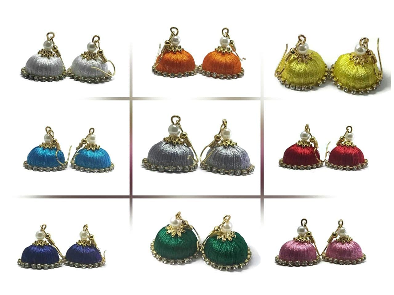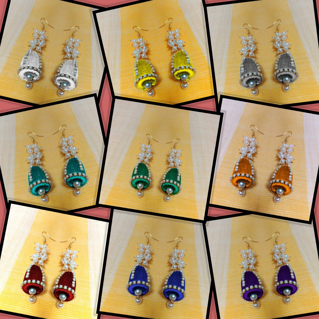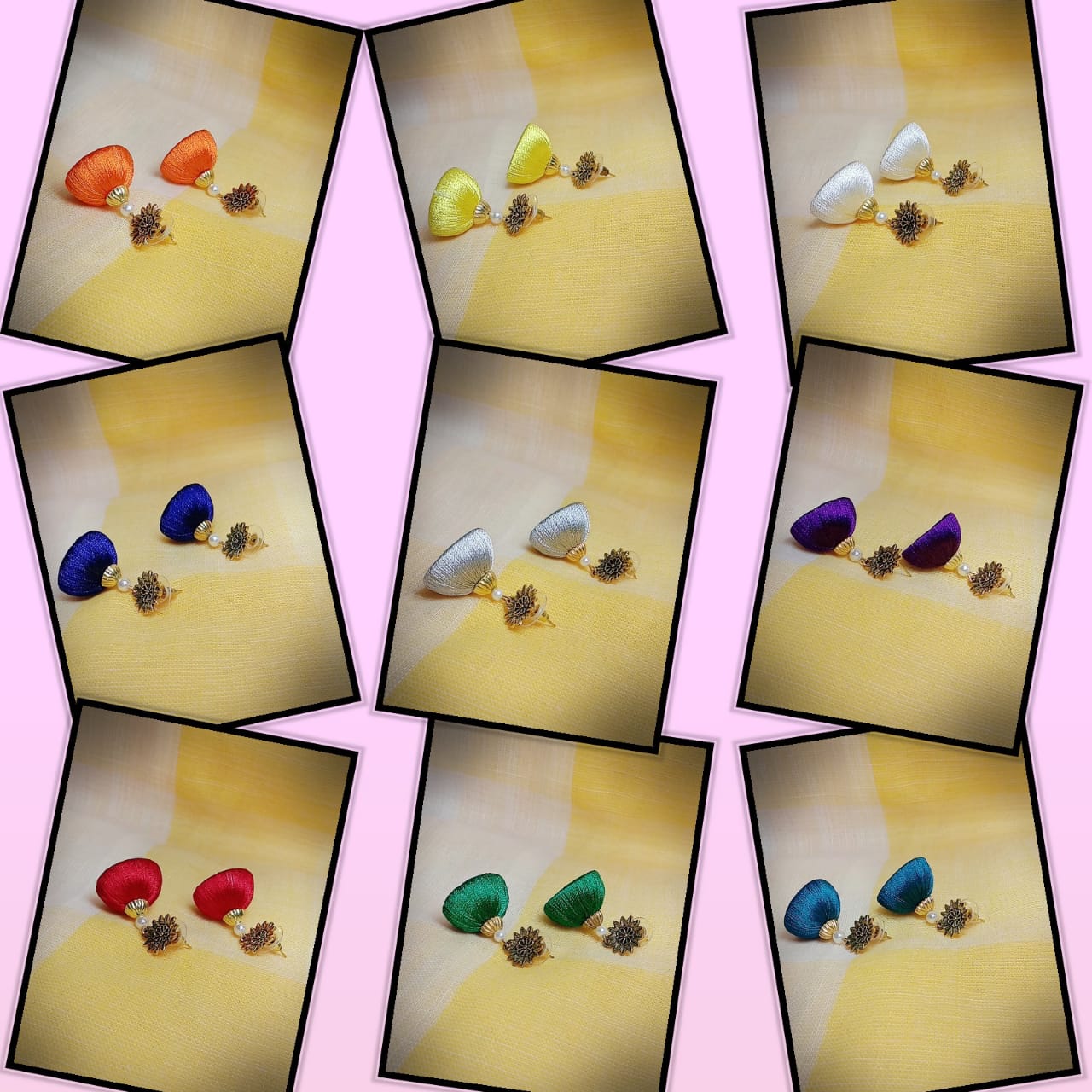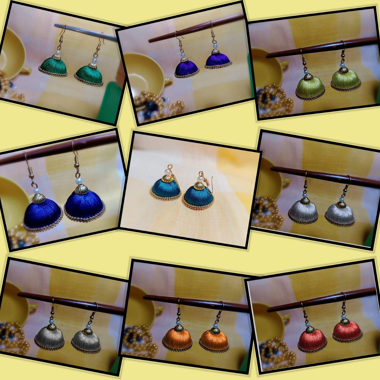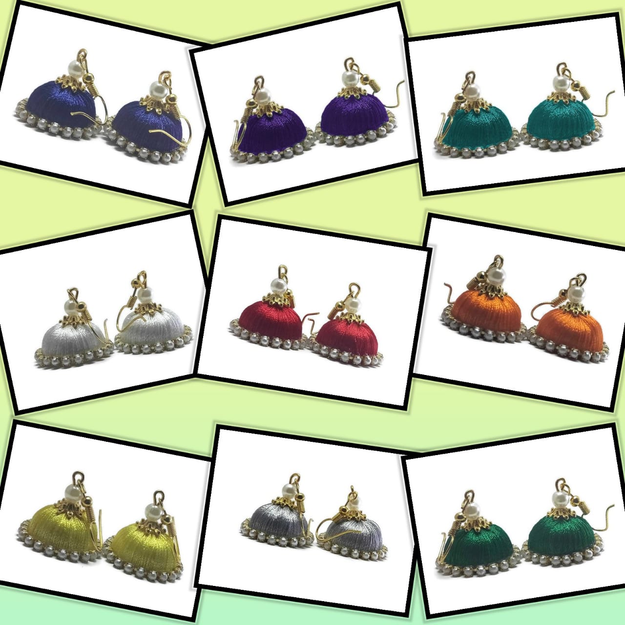 Black and Grey Silk Thread Small Size Jhumkas with acrylic cap