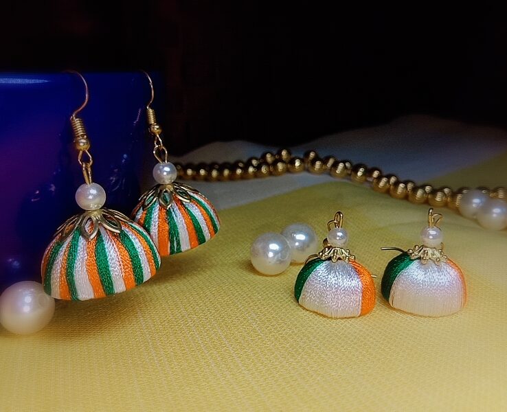 Black and Orange Silk Thread Small Size Jhumkas with acrylic cap