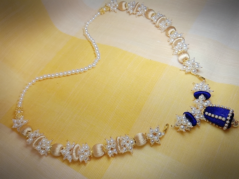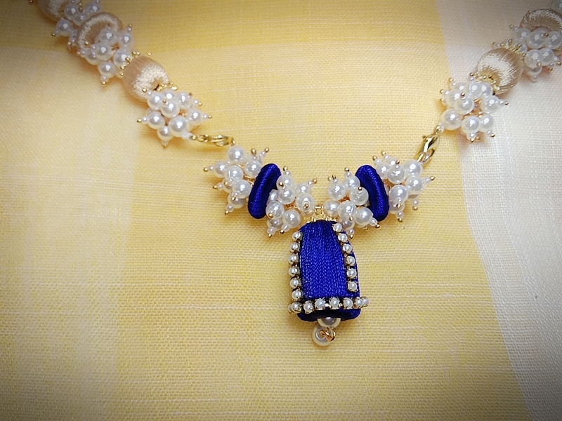 Be the first to review “Blue Silk Thread Loreal Necklace with Cone Shape Jhumka with Pearl Loreal Bunch and Pearl Lace”