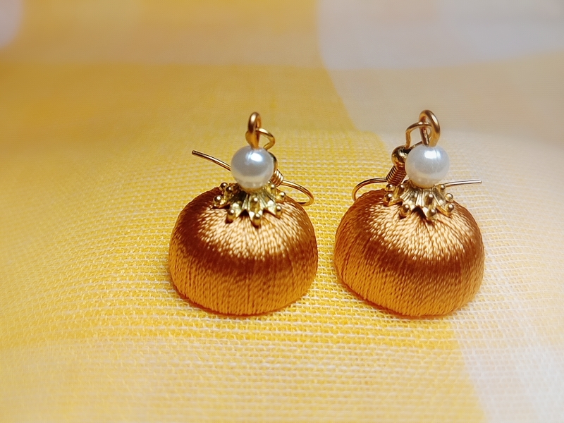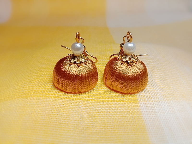 Be the first to review “Dark Golden Silk Thread Small Size Jhumkas”