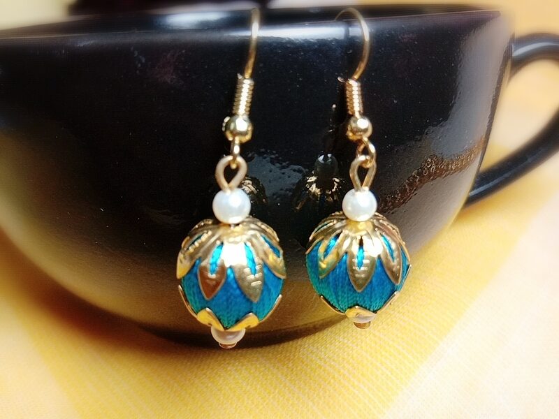 Be the first to review “Firozi (Blue) Silk Thread Small Size dangle bead earing with big metal cap (Kundal)”