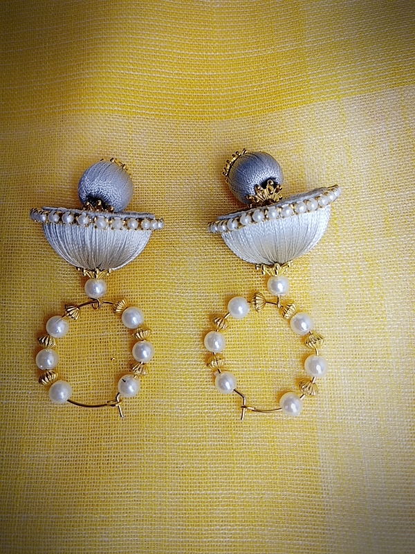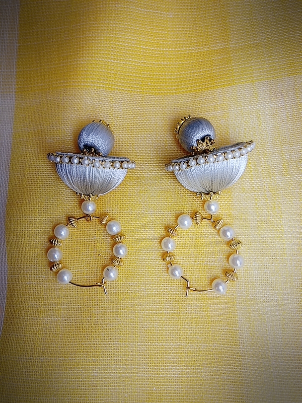 Be the first to review “Grey Ring with Silk Thread Medium Size Jhumkas and Kundal Dangle”