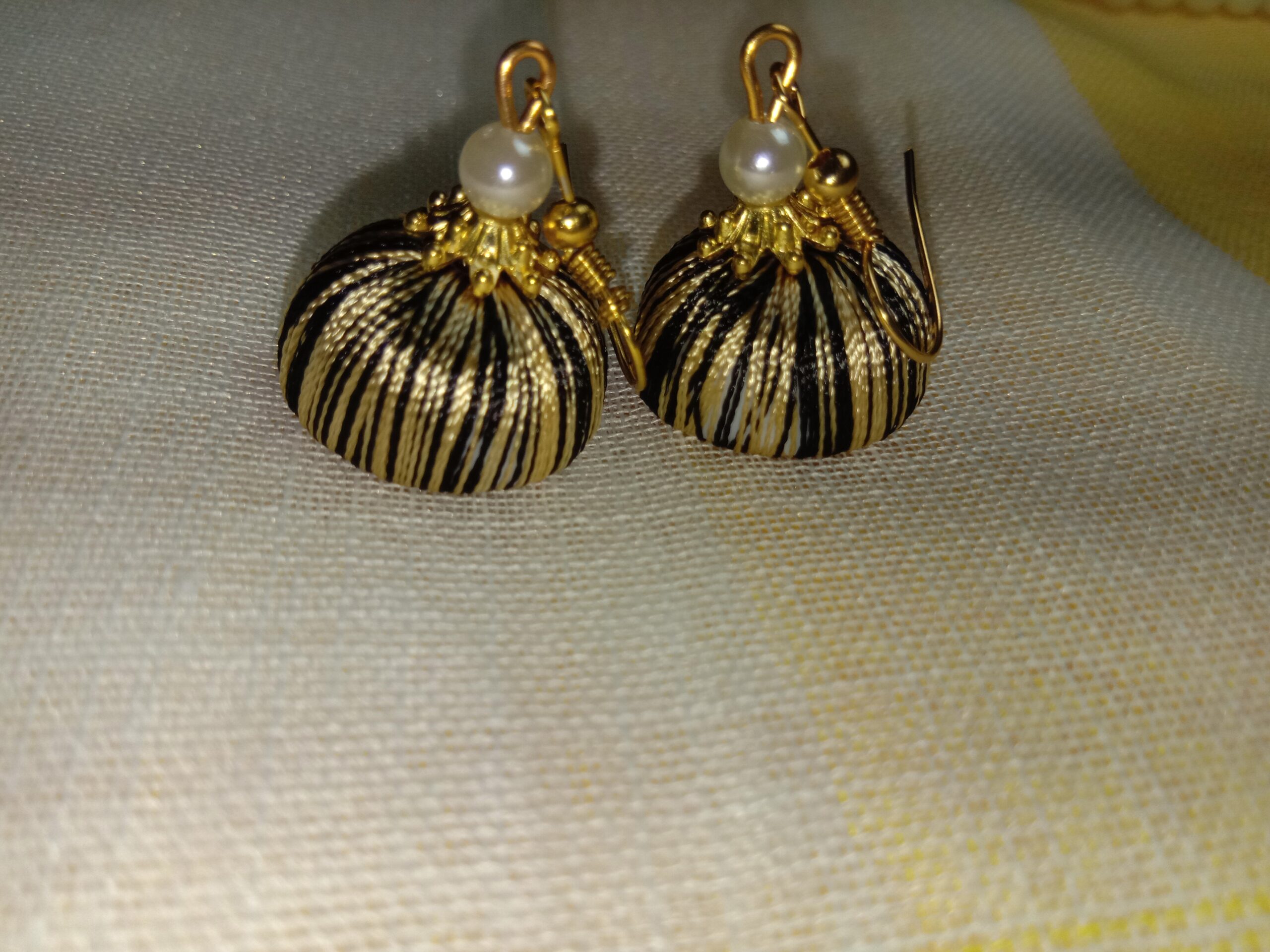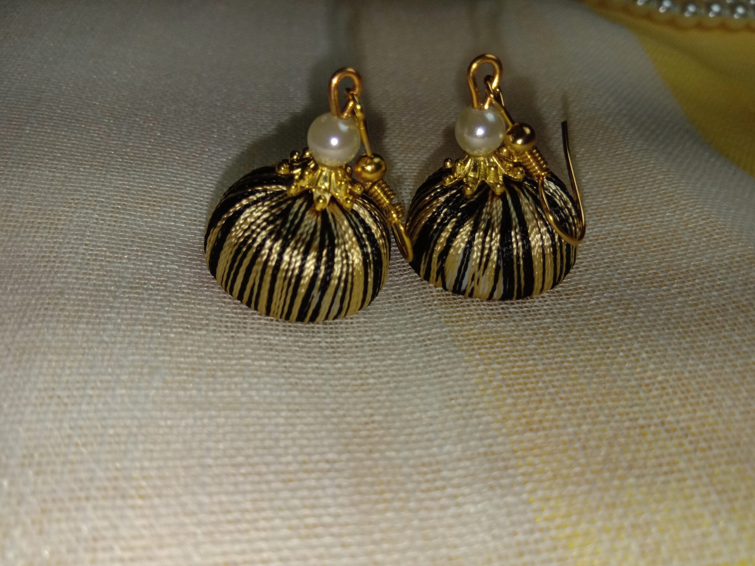 Be the first to review “Light Golden and Black Silk Thread Small Size Jhumkas”