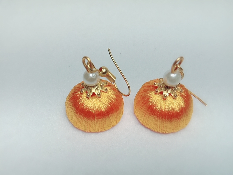Be the first to review “Mango Colour Silk Thread Small Size Jhumkas”
