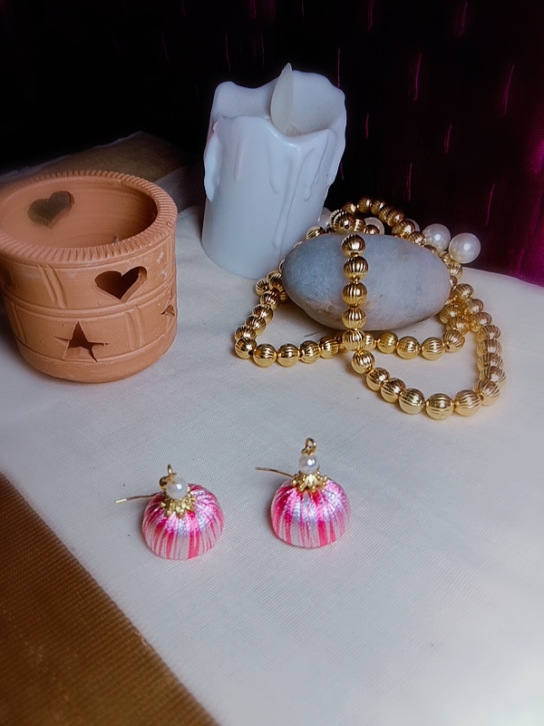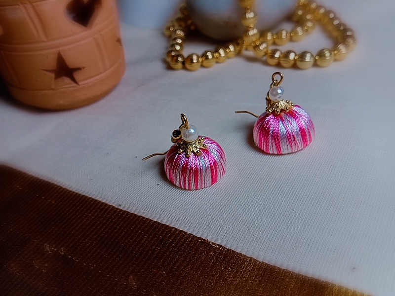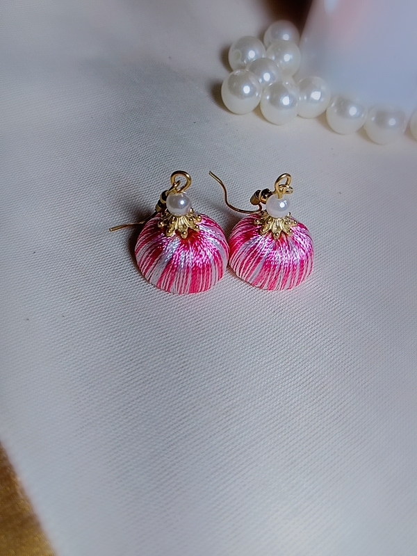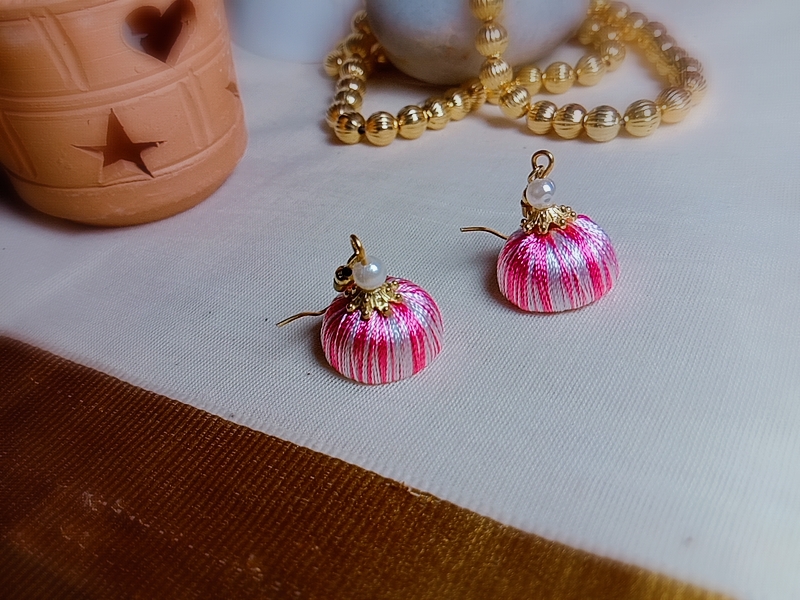 Be the first to review “White and Baby Pink Silk Thread Small Size Jhumkas”