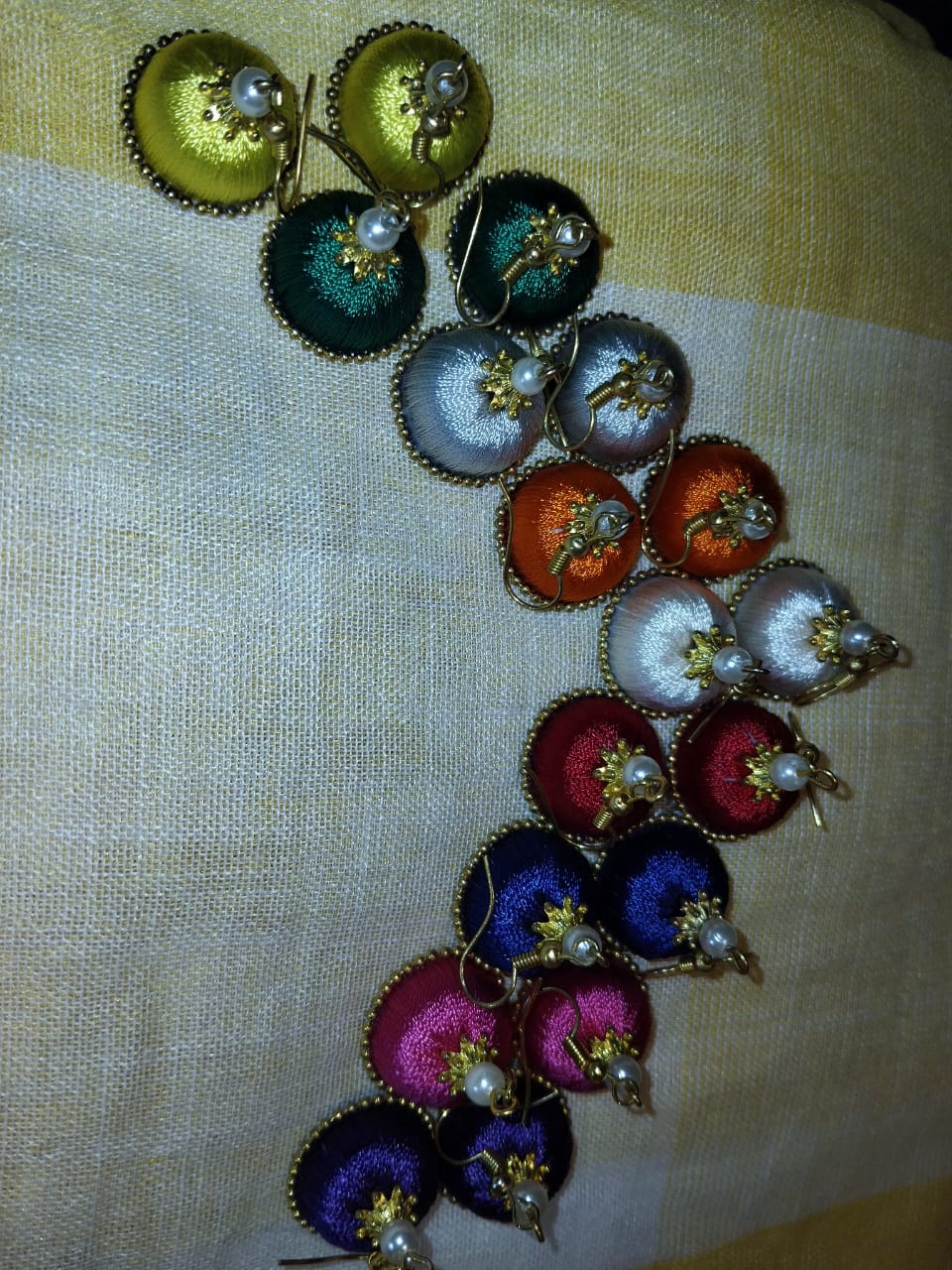 - Special Combo pack of 9 handmade Silk Thread jhumkas/earrings