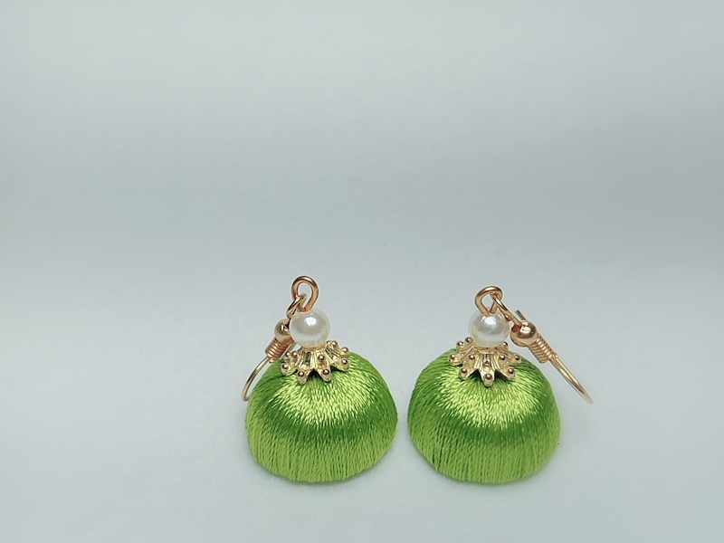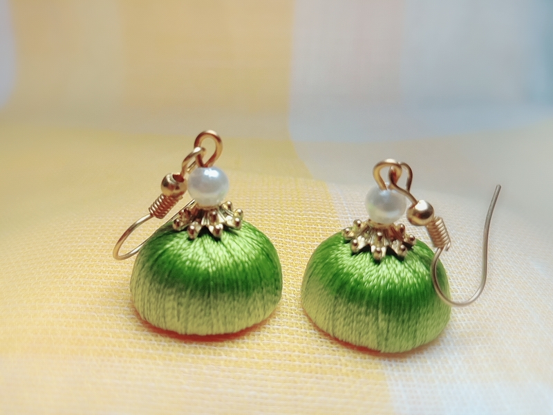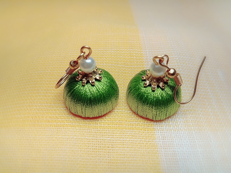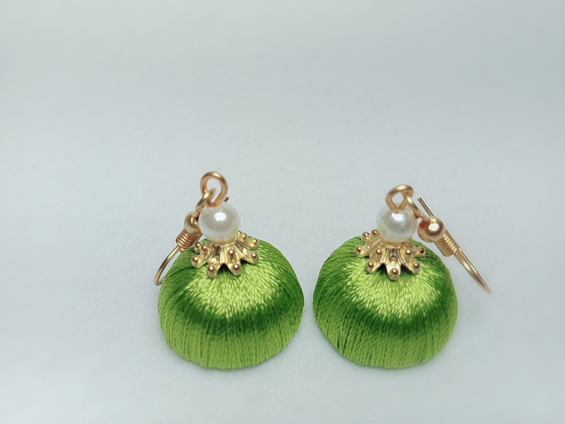 Be the first to review “Olive Green Silk Thread Small Size Jhumkas with Golden Acrylic Cap”