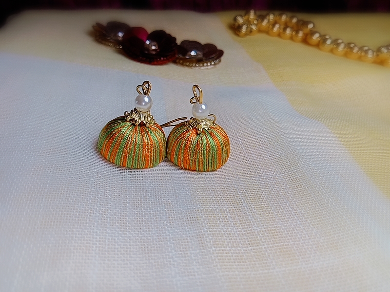 Be the first to review “Orange and Light Green Silk Thread Small Size Jhumkas with acrylic cap”