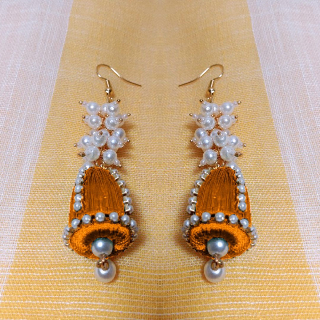 Be the first to review “Orange Silk Thread Cone Shape Jhumka with Pearl Loreal Bunch and Pearl Lace”