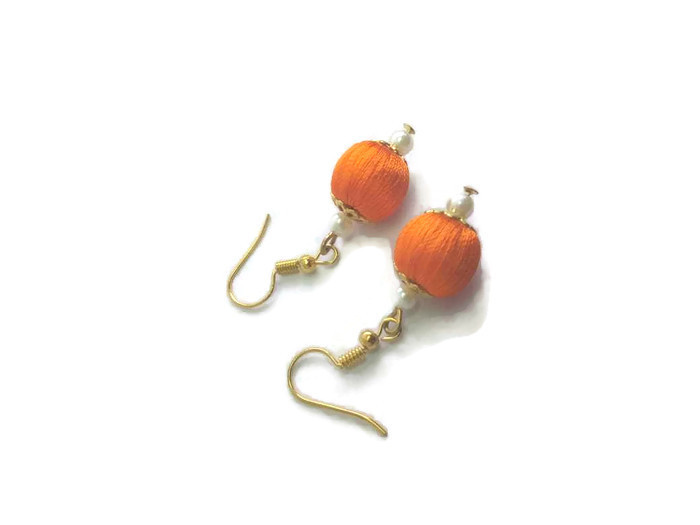 Be the first to review “Orange Silk Thread Oval Jhumka Earrings”