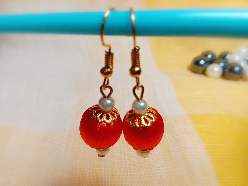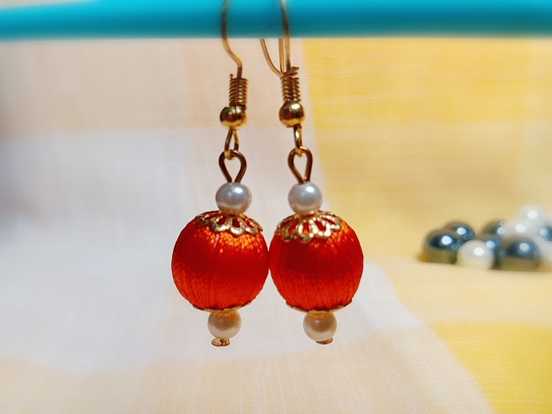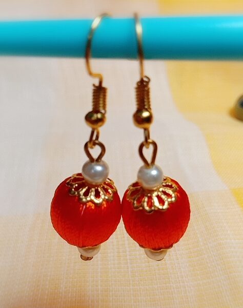 Be the first to review “Orange Silk Thread Small Size dangle bead earing with metal cap (Kundal)”