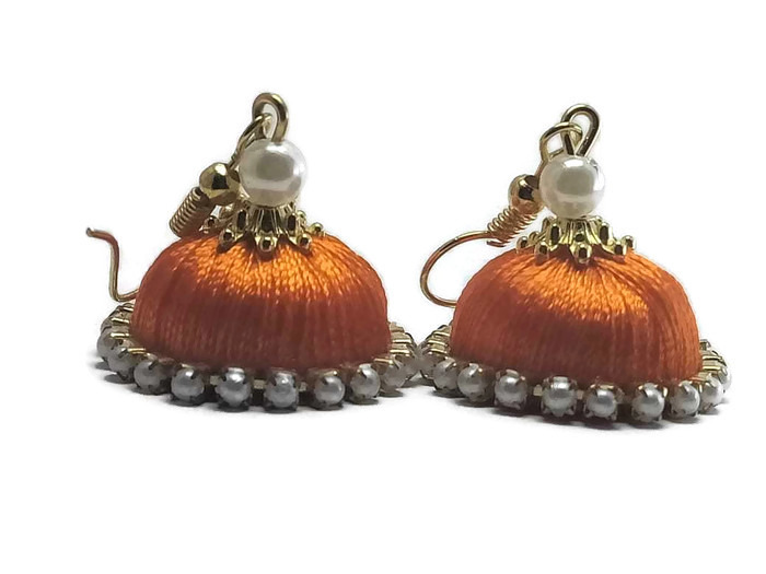 Be the first to review “Orange Silk Thread Small Size Jhumkas Pearl Lace”