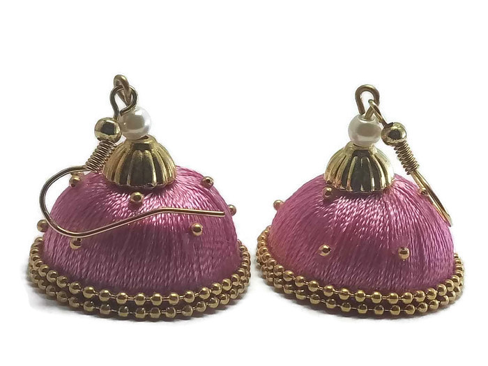 Be the first to review “Pink Silk Thread Jhumkas With Double Golden Lace”
