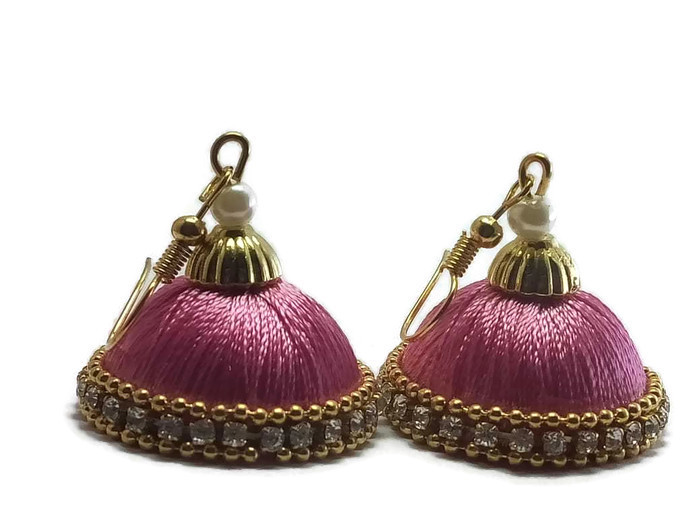 Be the first to review “Pink Silk Thread Jhumkas With Double Golden & Stone Lace”