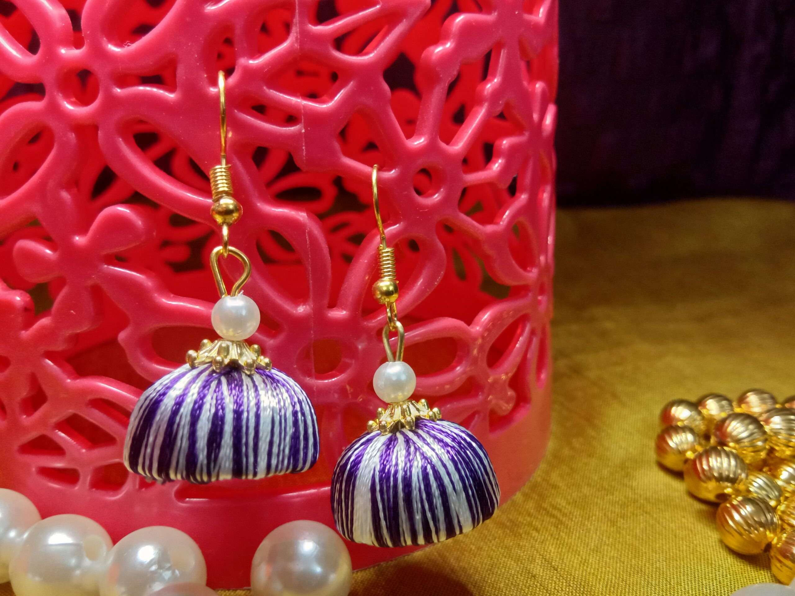 Be the first to review “Purple and White Silk Thread Small Size Jhumkas with acrylic cap”