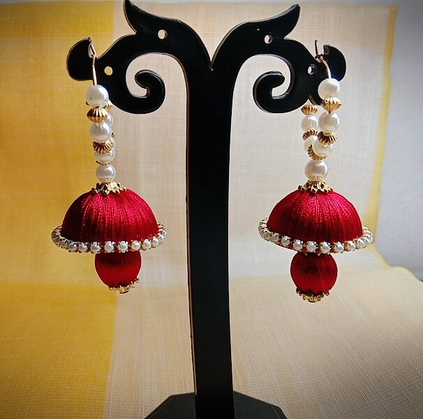 Be the first to review “Red Ring with Silk Thread Medium Size Jhumkas and Kundal Dangle”