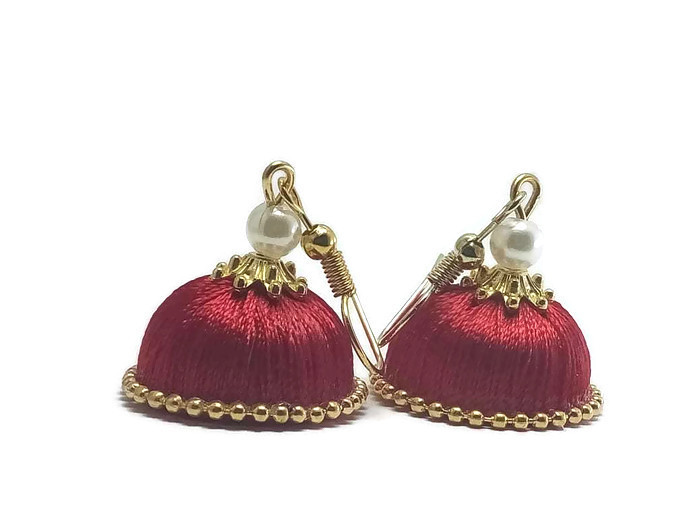 Be the first to review “Red Silk Thread Jhumkas With Golden Lace”