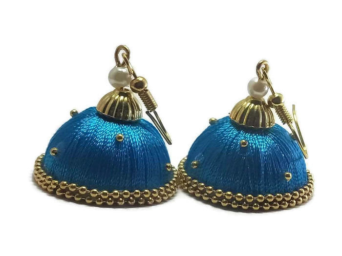 Be the first to review “Sky Blue Silk Thread Jhumkas With Double Golden Lace”